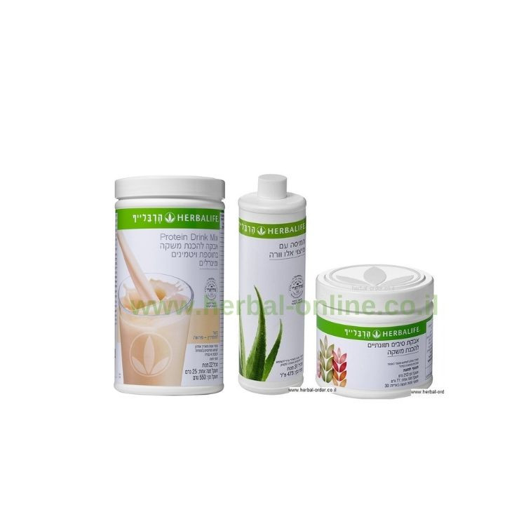 הערכה הכוללת שייק בטעם לבחירתך + אלוורה בטעם טבעי או מנגו לבחירתך + משקה סיבים תזונתיים.